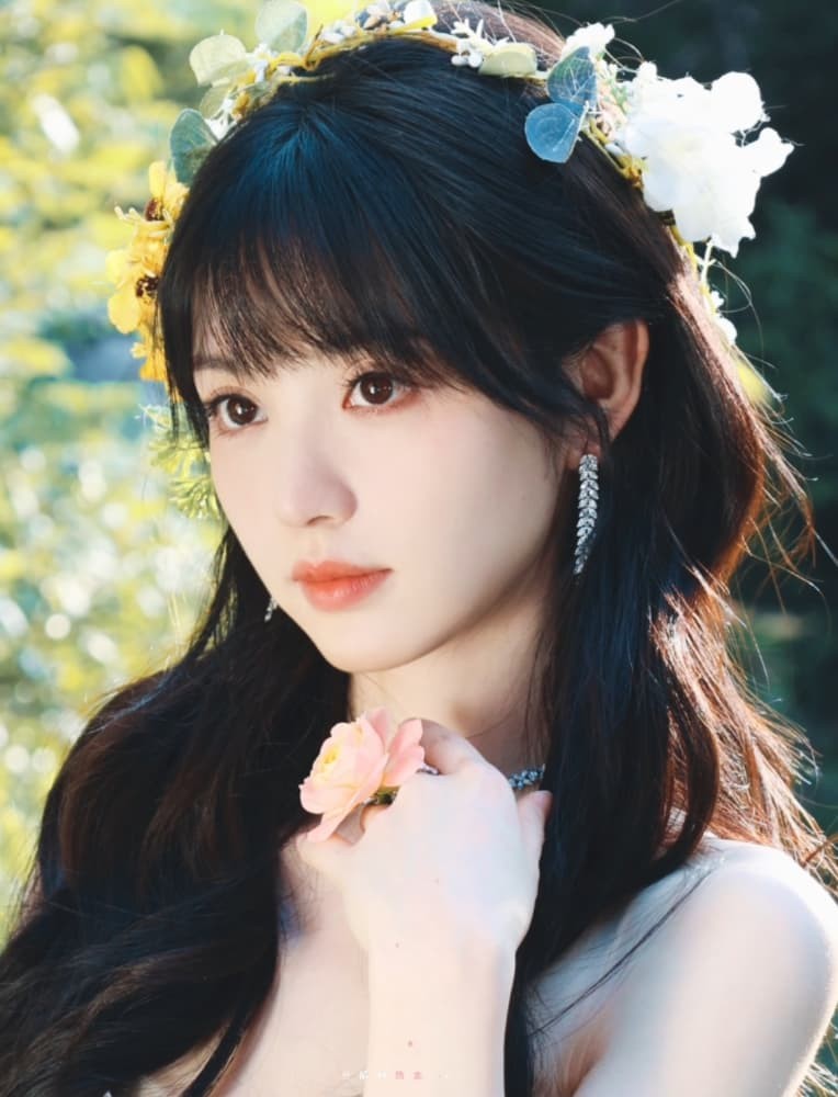 与以往一些极致华丽的造型不同,这组写真的妆发营造了一种“无妆胜有妆”的清新感[citation:3]。近乎素颜的裸妆重点在于突出她天生的好气色与饱满的胶原蛋白,眉眼清澈,唇色淡雅[citation:3]。发型或是蓬松的波浪卷发增添浪漫氛围,或是简单的披肩发凸显本真[citation:7]。这种去繁就简的妆造思路,将观众的注意力牢牢锁定在她本身灵动自然的神态与服装的精妙细节上,从而强化了“花仙子”不染尘俗的梦幻意象[citation:3][citation:9]。