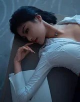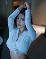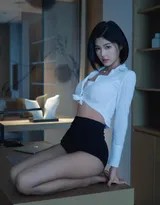这组写真彻底颠覆了公众对车模写真的固有印象。没有奢华的布景与繁复的服饰,程儿选择以经典的白衬衫搭配黑色短裤,极简的搭配反而将所有的视觉焦点汇聚于她本身。白衬衫时而规整扣起,散发着干净利落的知性美;时而随意松开领口,流露出不经意的慵懒与松弛。这种“去繁就简”的呈现方式,恰恰与程儿本人给人的感觉不谋而合——在浮躁的行业中,她因深厚的学识底蕴而显得格外沉静与独特。她就像一位从设计图纸中走出的建筑师,用身体与情绪作为素材,在镜头前构建起一个个充满故事感的画面空间。