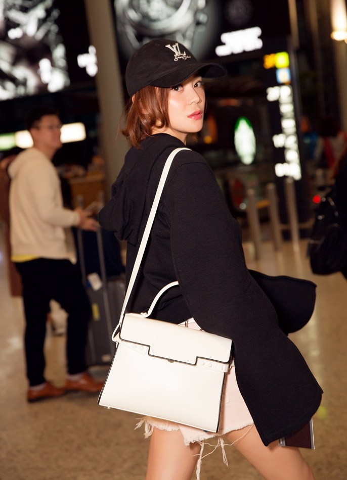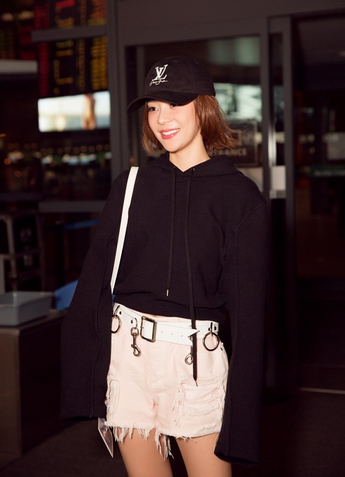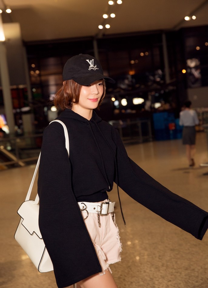 在这组备受瞩目的机场造型中,袁姗姗的整体搭配完美诠释了“休闲与气场并存”。她头戴一顶简约的黑色棒球帽,展现出低调的明星日常感。上身选择了一件宽松的黑色卫衣,舒适度满分,而下身搭配的毛边牛仔短裤,则在洒脱中不经意地流露出几分俏皮与活力。最引人注目的莫过于她脚上那双白色“恨天高”长靴,如此高难度的单品被她驾驭得游刃有余,不仅没有显得笨重,反而拉长了腿部线条,成为了整个造型的气场担当。