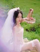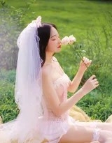 光影是这场自然戏剧的另一位导演。户外写真的精髓常在于捕捉瞬息万变的自然光。在这组照片中,我们可以想象阳光穿透云层或头纱,在模特身上洒下斑驳的光影。这种光线不仅勾勒出了蕾丝面料的通透质感与头纱的飘逸轮廓,更能为模特的脸庞染上温暖的神采,或投下深邃的阴影,让情绪的表达更加丰富和立体。逆光拍摄时,头纱和发丝边缘会泛起金色的轮廓光,人物仿佛被自然之光所圣化,营造出空灵、梦幻的氛围。
