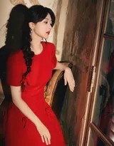 红色,从来不是简单的颜色。它代表着热情、勇气与绽放的生命力。在这组写真中,杨紫身着的红色连衣裙采用轻盈面料,在微风与步履间流转出柔美的弧线。设计师巧妙地通过剪裁让裙身既保有端庄的轮廓,又不失飘逸的动感。当光线穿过薄纱般的材质,红色便有了层次——时而浓郁如醇酒,时而清透似朝霞。