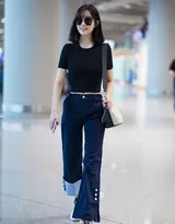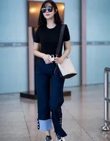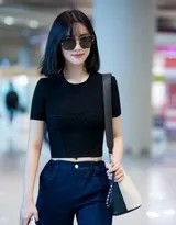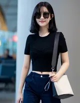 孟子义此次的机场造型,堪称一份简约而不简单的夏日穿搭范本。她选择了一件剪裁利落的黑色短款上衣,恰到好处地展现其优越的肩颈线条与纤细腰身。下身搭配的同色系高腰长裤,不仅在视觉上最大限度地拉长了腿部比例,更与上衣构成了流畅连贯的整体感。这种“上短下长”的搭配公式,正是打造完美身材比的黄金法则。整套造型的亮点在于适度露肤带来的轻盈感与呼吸感——露脐设计俏皮地勾勒出腰线,为全身的黑色注入一抹恰到好处的性感与活力,完美印证了其“克制的性感”的时尚哲学。