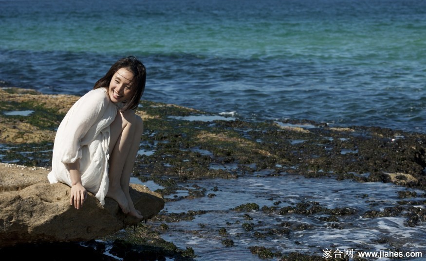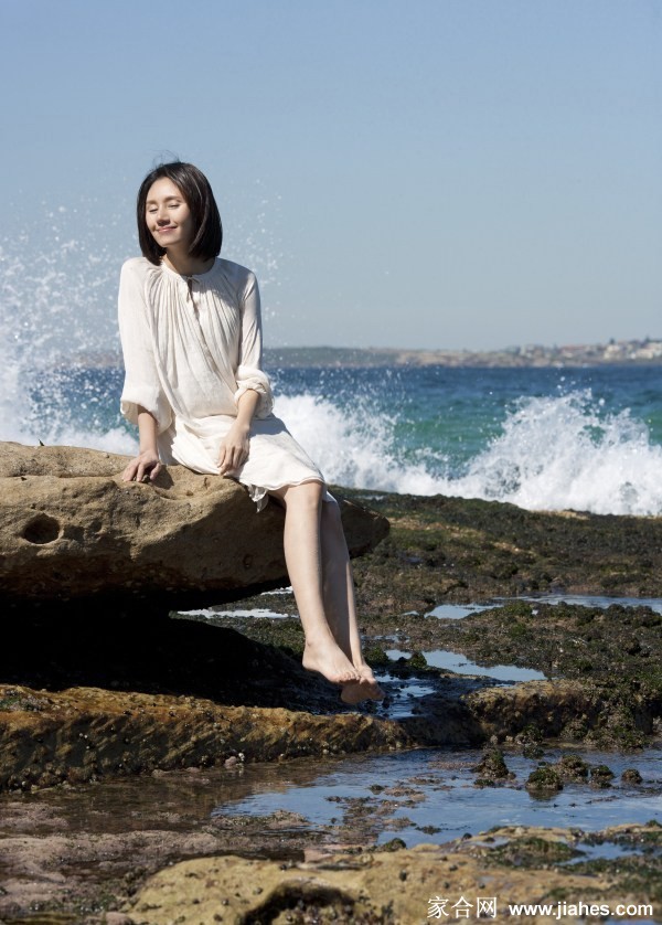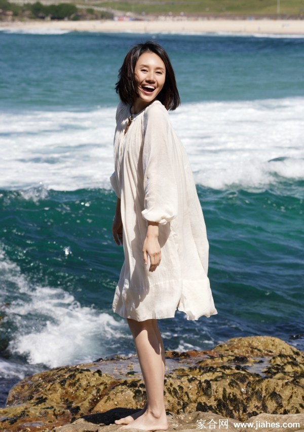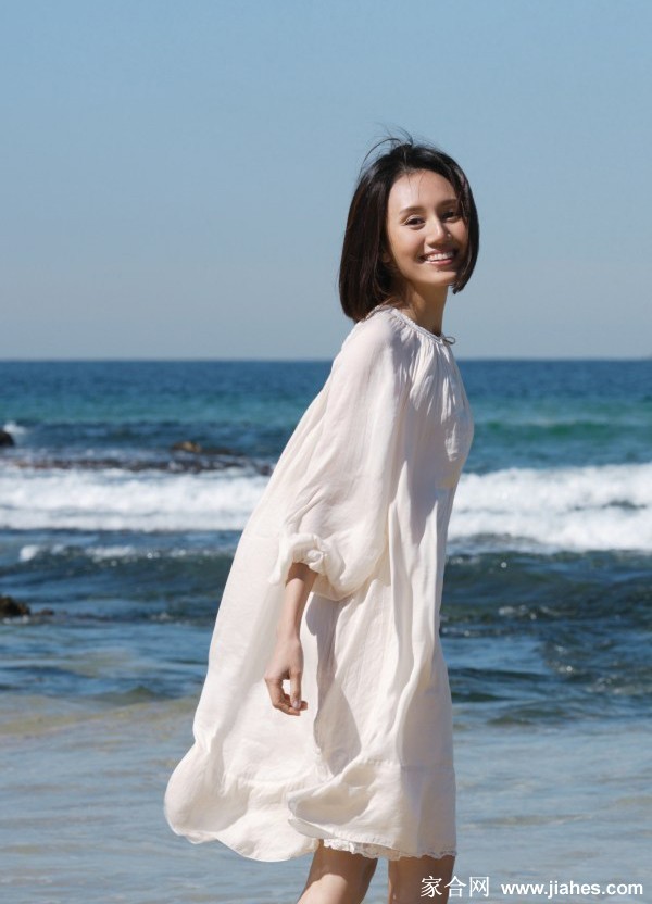 袁泉的美,向来不是一种具有侵略性的惊艳,而是一种需要细细品味的、内敛而持久的光华。在这组照片中,她或身着简约的白色系服装,或披着质地柔软的针织衫,妆容清淡,发型自然。没有刻意摆弄的姿态,只有与海浪、沙滩、微风以及光线的自然互动。她时而静静伫立,任凭海风吹乱发丝,眼神深邃地望向海平面,仿佛在与远方的自己对话;时而微微低头浅笑,那份不经意的温柔,瞬间柔软了周遭的空气。这种“不争”的状态,恰恰成就了影像中最动人的力量——一种洗尽铅华后的本真与自信。