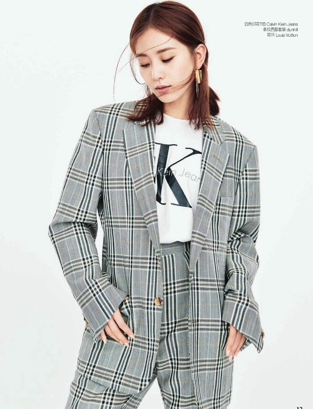 造型的颠覆是此次大片的灵魂。其中最引人注目的,莫过于那套宽大的男士格子西装造型。廓形的西装与她纤细的身形形成巧妙对比,在模糊性别界限的穿搭中,一种慵懒而不羁的时髦感油然而生。这也不禁让人好奇:“科科,男西装会是谁的呢?” 这种充满故事感的搭配,为影像增添了无限的想象空间。与此同时,精致妆容与率性服装的碰撞,也延续了她以往在《悦己》大片中敢于尝试大胆撞色的时尚态度。