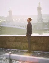 西装,历来是绅士与规整的代名词。然而在陈飞宇的演绎下,经典的西服套装被注入了全新的活力。或许是解开纽扣的随性,或许是面料在冷空气中呈现的挺括质感与雪地柔软的反差,又或许是整体剪裁与身体动态间形成的自然褶皱。西装不再是束缚,反而成为他表达个性的一部分,于冷冽环境中构筑起一道兼具温度与风度的风景线。